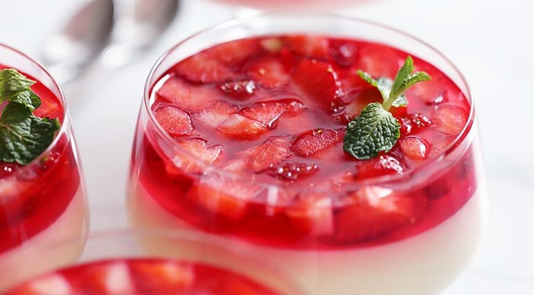 Panna cotta is a simple and basic dessert that is made of dairy thickened with gelatin. Panna cotta is popular throughout Italy and typically served with caramel or fruit sauce. Vanilla panna cotta recipe with strawberry JELL-O is one of those desserts you can throw together in a matter of minutes.