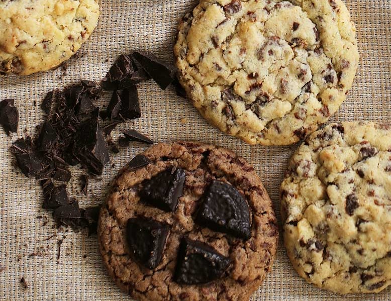 The traditional recipe starts with a dough composed of butter and both brown and white sugar, semi-sweet chocolate chips and vanilla. Variations on the recipe may add other types of chocolate, as well as additional ingredients such as nuts or oatmeal. There are also vegan versions with the necessary ingredient substitutions, such as vegan chocolate chips, vegan margarine, egg substitute, and so forth. A chocolate chocolate chip cookie uses a dough flavored with chocolate or cocoa powder, before chocolate chips are mixed in. These variations of the recipe are often referred to as ‘double’ or ‘triple’ chocolate chip cookies, depending on the combination of dough and chocolate types.