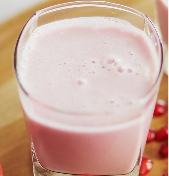 Pomegranate milkshake is ready to be served.