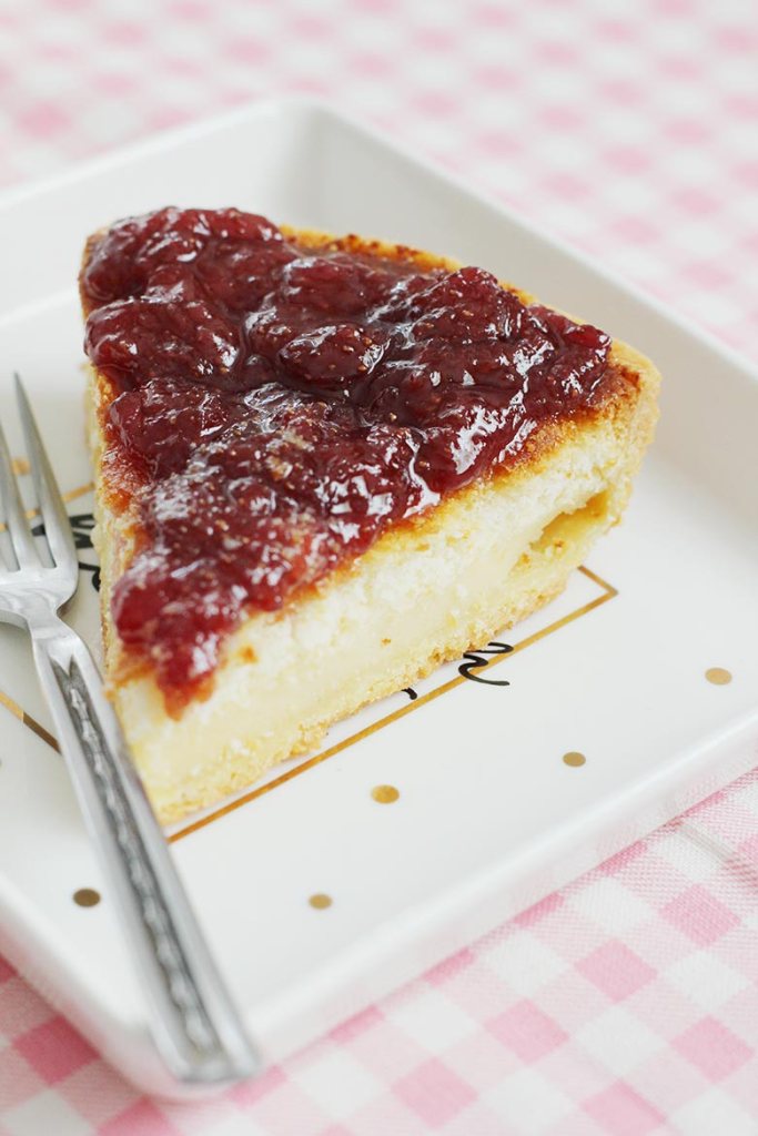 A slice of baked cheesecake recipe with strawberry jam is good for evening. In this article I’ll teach you how to make this yummy desserts. (Baked Cheesecake)